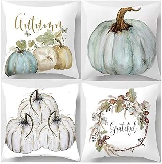 Amkun Lot de 4 housses de coussin décoratives en mélange de coton, Motif citrouille, Coton Mélange de coton, citrouille, 45 x 45 Centimeters