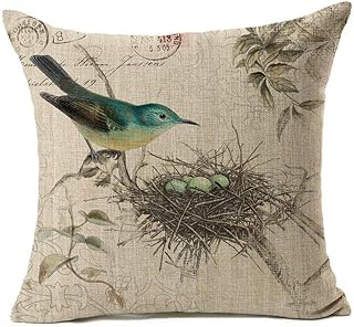 YISUMEI Housse de Coussin Vintage en Coton et Lin Motif nid d'oiseau, Coton mélangé, Couleur 1, 40x40 cm
