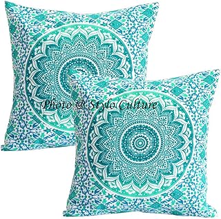 Stylo Culture Couvertures de Coussin Indien Scatter Vert Imprimé Floral Coussin Housse de Coussin Coton Carré Mandala Traditionnel Ombre 40x40 cm Housse de Coussin (Lot de 2)
