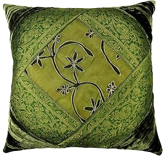 Guru-Shop Housse de Coussin en Brocart Velours Oriental, Housse de Coussin, Coussin Décoratif 40x40 cm - Motif Vert Foncé 1, Coton, Coussin Décoratif Coussin de Canapé