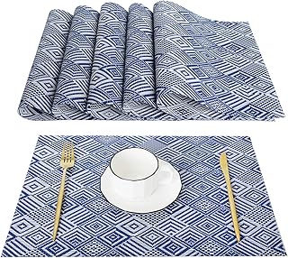 Ranvi sets de table pour table à manger résistant à la chaleur résistant aux taches lavables sets de table en pvc set de 5 sets de table à manger sets de table en vinyle tissé (bleu, ensemble de)