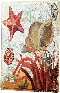 LEotiE SINCE 2004 Plaque en Métal Métallique Poster Mural tin Sign 40x30 cm Cuisine Coquillage étoile de mer algues