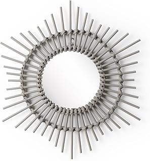 Black Velvet Studio Miroir Hawai Round Mural décoratif, Bambou, rotin Naturel, Forme d'étoile, Style Ethnique, Nordique, pour Salle de Bain ou Hall d'entrée, Coleur Gris, 40x40x2 cm.
