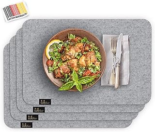 Sets de table Luxflair en feutre noble pour 4 personnes en grisâtre. Sets de table XXL env. 30x45cm, lavable. Tapis de table en feutre design moderne
