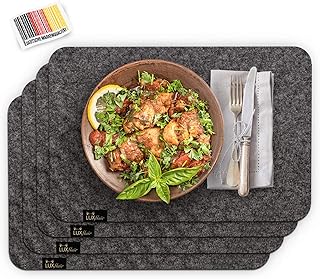Sets de table Luxflair Noble en feutre pour 4 personnes en gris foncé. Sets de table XXL env. 30x45cm, lavable. Tapis de table en feutre design moderne