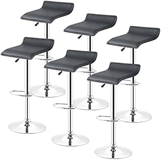 YJIIJY Tabouret de Bar Lot de 6, Tabourets de Bar Réglable en Hauteur, chaises de Bar réglable, tabourets de Bar Cuisine, avec Repose-Pieds et métal chromé (Noir, 6)