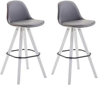 CLP Lot De 2 Tabourets De Bar Franklin Similicuir I Chaises Hautes Avec Piètement En Bois De Chêne Et Repose-pieds En Métal, Couleurs:gris, Couleur du cadre:blanc (chêne)