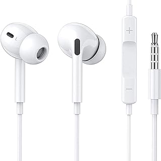 Écouteurs, Écouteurs Intra-Auriculaires, Écouteurs de Filaires avec Microphone & Contrôle du Volume, Deep Bass, Isolation du Bruit, Casque Ergonomique Stéréo Anti-Bruit avec Prise Jack 3,5 mm-Blanc