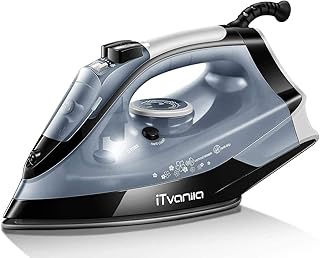 Fer à Repasser Vapeur, Fer à Vapeur avec Plaque de Base en Céramique, Fonction Pressing 210g/min, Réservoir de 300 ml, Anti-gouttes et Auto-nettoyage, Vapeur Verticale, 2200W