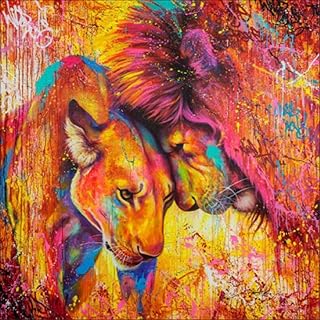 MXJSUA 5D Diamant Peinture par numéro Kit Bricolage Forage Rond Complet Strass Image Artisanat Maison décoration Murale Aimant Lion et guépard 30x30 cm