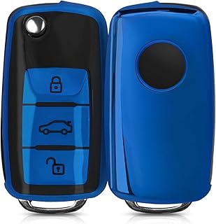 kwmobile Accessoire Clef de Voiture Compatible avec VW Skoda Seat 3-Bouton - Coque de Protection en Silicone Bleu Haute Brillance-Noir Haute Brillance