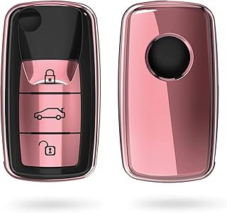 kwmobile Accessoire Clef de Voiture Compatible avec VW Skoda Seat 3-Bouton - Coque de Protection en Silicone Or rosé Haute Brillance