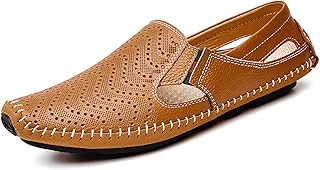 Mocassins de Conduite en Cuir Perforé pour Hommes Respirant Confort Marche Chaussures Bateau Pantoufles Plates Extérieur