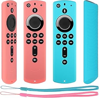 Pinowu Housse Coque de Protection [Sangle Incluse] Compatible avec Fire TV Stick 4K / Fire TV Stick (2nd Gen)/ Fire TV Cube/Fire TV (3rd Gen) Télécommande (2pcs: Turquoise et Rose)