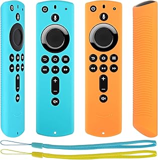 Pinowu Antidérapant Housse Coque [Sangle Incluse] Compatible avec Fire TV Stick 4K / Fire TV Stick (2nd Gen)/ Fire TV Cube/Fire TV (3rd Gen) Télécommande (2pcs: Turquoise et Orange)