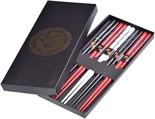 Quantum Abacus Set de 5 Paires de Baguettes Chinoises Dragons Tricolor, Baguettes en Bambou dans Une Belle boîte Cadeau en Carton Noir, H2-S5C-BB-01