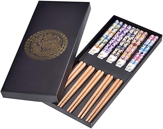 Quantum Abacus Set de 5 Paires de Baguettes Chinoises Multicolore, Baguettes en Bambou dans Une Belle boîte Cadeau en Carton Noir, H2-S5C-BB-03