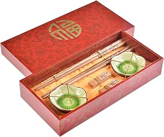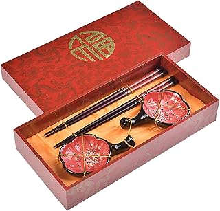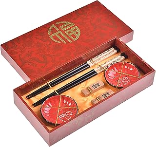 Quantum Abacus Précieux Set de Baguettes Chance Rouge en Bois sculpté avec 2 Paires de Baguettes, 2 Supports, 2 Bols en céramique, dans Une boîte Cadeau, Mod. I_S2-B-W-09
