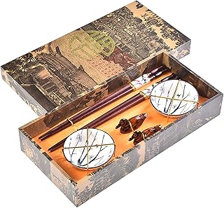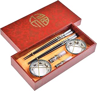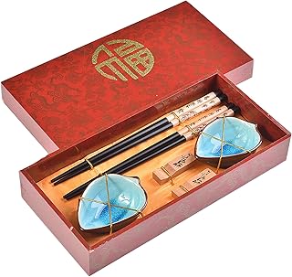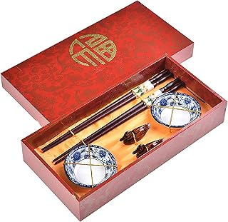 Quantum Abacus Précieux Set de Baguettes Printemps Chinois en Bois sculpté avec 2 Paires de Baguettes, 2 Supports, 2 Bols en céramique, dans Une boîte Cadeau, Mod. I_S2-B-W-02