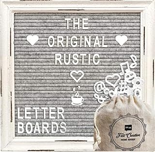 Felt Creative Home Goods Grand Babillard en Feutre Rustique avec Cadre Vintage Blanc et chevalet Plus de 800 Lettres de l'alphabet, Chiffres, icônes, Mots cursifs englais (10x10 Gris)