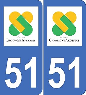 JINTORA - 2 Stickers - 2 Autocollants 51 Marne Plaque immatriculation département Auto 51 100x45 mm