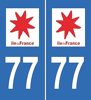 JINTORA - 2 Stickers - 2 Autocollants Plaque immatriculation Auto département 77 100x45 mm