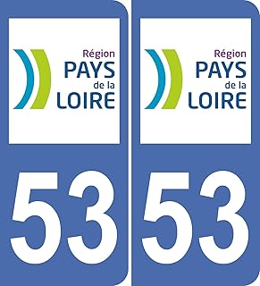 JINTORA - 2 Stickers - 2 Autocollants 53 Mayenne Plaque immatriculation département Auto 53 100x45 mm