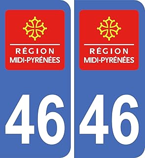 JINTORA - 2 Stickers - 2 Autocollants 2 Autocollants 46 Lot Plaque immatriculation département Auto 46 100x45 mm