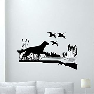 66 X 42 cm Vinyle Autocollant Mural Amovible Chasse Chien Sticker Mural Canards Gun Hunters Style Mur Art Mural Maison Chambre Décor Stickers Muraux