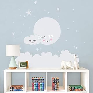 Lune étoiles Wall Decal Cloud Stickers Muraux Pépinière Pour enfants Room Sticker Autocollant Mural Sticker filles vinyle décoratif bébés amovible Art Sticker Mural@blanc_173x173cm