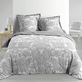 DOUCEUR D'INTERIEUR parure 3 pièces 260 x 240 cm percale imprime kashmina blanc