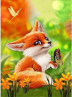 ParNarZar Diamond Painting Complet 5D, Renard et Papillon 35 x 45 cm, Broderie Diamant Animaux Kit, Diamant Peinture Plein Carré Kit Strass Image Artisanat pour la Décoration Murale À La Maison