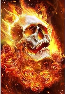 ParNarZar DIY 5D Diamant Peinture par Numéro Kit, Crâne en Flammes 35 x 45 cm Broderie Diamant Kit, Diamond Painting Complet 5D Strass Image Artisanat pour la Décoration Murale À La Maison
