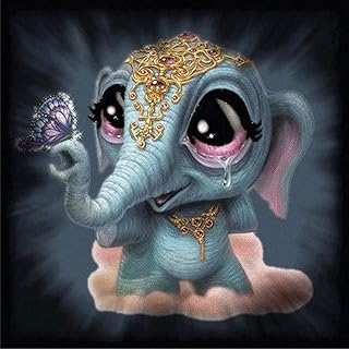 ParNarZar Diamant Peinture Carré Kit par Numéro, Papillon et bébé éléphant 40 x 40 cm, Broderie Diamant Animaux Kit Diamond Painting Complet 5D Strass Image Artisanat