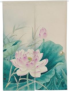 Etopfashion Chinois Traditionnel Lavage à l'encre Peinture Motif Rideau Japonais Noren Porte Rideau Chambre Rideau Tenture Murale Porte Diviseur, 58 Largeur x 120 CM Long, Vert Lotus