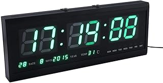 Horloge Murale Numérique LED avec Calendrier Date Grand Affichage de Température Pendule Murale Electronique Horloge Suspendue Electrique pour Bureau Maison Salon Vert