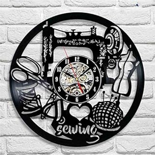 QKSZ Vinyle Horloge Murale Horloge Murale de Salon de Couture, Horloge de Disque Vinyle sur Mesure, 12 Pouces (30 cm), Cadeau sur Mesure (Cadran Noir)