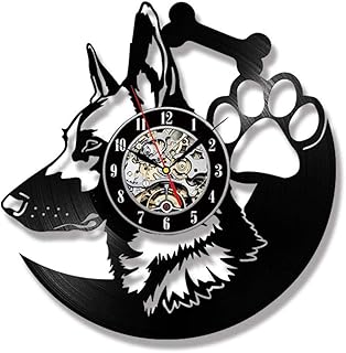 YYIFAN Horloge murale en disque vinyle à LED, motif berger allemand, classique, créative, vintage, décoration d'intérieur 3D, design moderne, pour bureau, bar, chambre, cadeau, 30 cm (sans LED)
