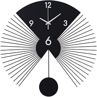 Horloge murale moderne Chinois Horloges Salon Chambre Mur Fan-forme Table Suspendu décoratif Mode Simple Chinese Style Creative Big Wall Horloge cadeau noir et blanc
