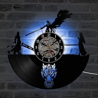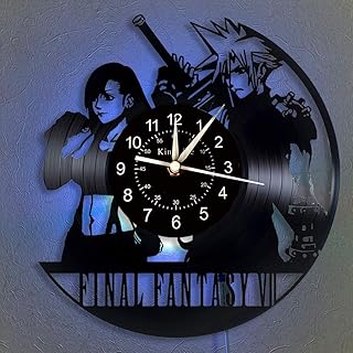Horloge Murale Disque Vinyle Final Fantasy LED 12 'Vinyle CD Horloge Quartz | Décoration Intérieure Fait Main | Horloge Murale Lumineuse 7 Couleurs | Cadeaux Créatifs pour Amis et Enfants.