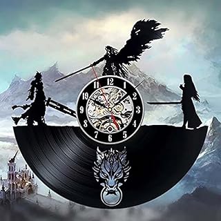 Vintage Disque Vinyle Horloge Murale, Série Final Fantasy Creative Wall Art Mural Décoratif Sourdine Cadeau Horloge Noir 12 Pouces, Convient Intérieur Salon Chambre