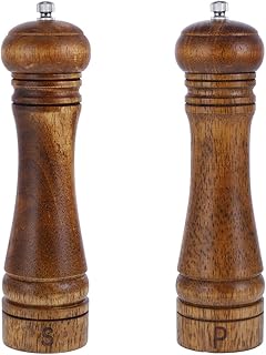 Moulins à Poivre et Sel,Set de Moulins à Poivre et Sel,Salieres et Poivrieres Bois,Moulin à Épices Manuel,Réglables avec Broyeur à épices en Céramique,Avec 2 brosse de nettoyage,Lot de 2 (8.6 inch)