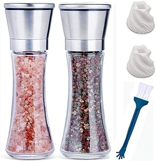 feihao Moulin à sel et Poivre,Moulins à Poivre, Broyeurs en Acier Inoxydable Brossé et Verre, Broyeur en Céramique Réglable,adapté pour l'extraction des épices (2pcs / Pack)
