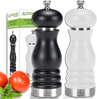Moulins à Épices Classiques SVENSBJERG en Set, Moulin à Sel et à Poivre, Moulins à Épices Premium en Bois de hêtre avec broyeur Céramique Réglable, Set Noir et Blanc